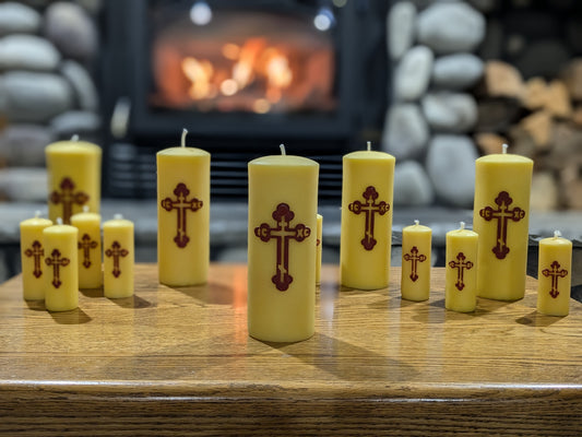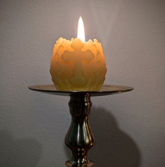 100% Pure Beeswax - Small Hand-painted Cross Candle